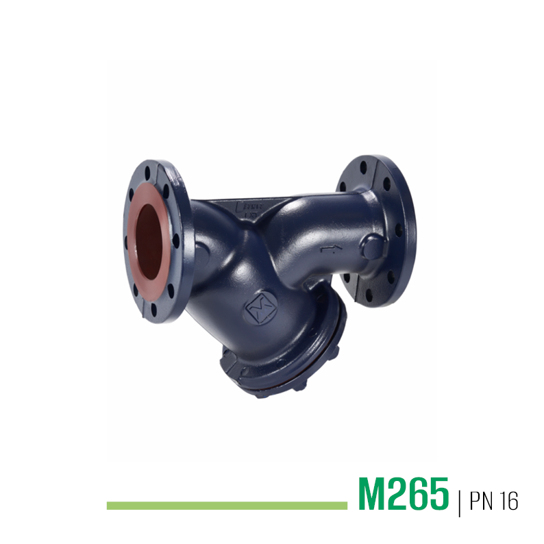 Filtro a Y in ghisa grigia EN-GJL-250, serie PN 16, con cestello estraibile in tela metallica di acciaio inox AISI 304