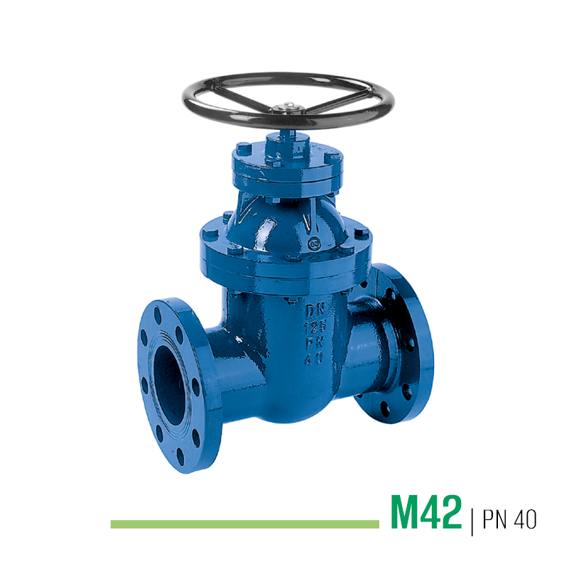 Saracinesca a corpo cilindrico a tenuta metallica in ghisa grigia EN-GJL-300, serie PN 40, con verniciatura interna ed esterna idonea per acqua potabile, con o-ring, a vite interna