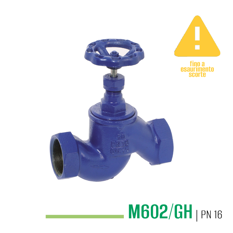 Valvola a globo in ghisa grigia EN-GJL-250, serie PN 16, con attacchi filettati GAS F/F, interni in acciaio inox
