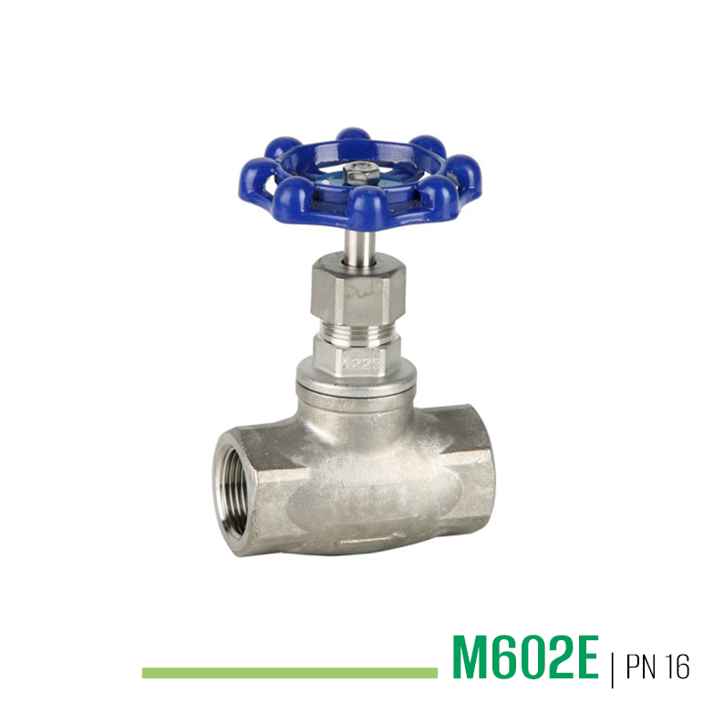 Valvola a globo in acciaio inox AISI 316, serie PN 16, con baderna, con attacchi filettati GAS F/F